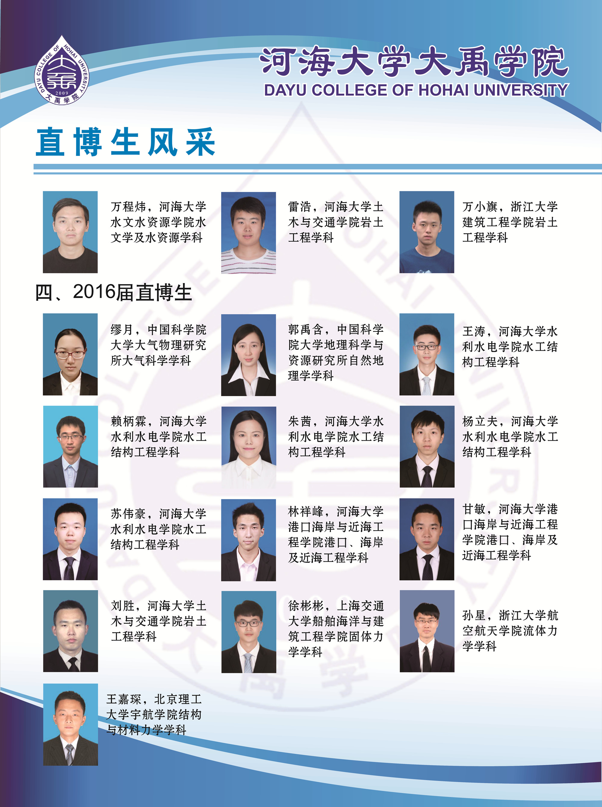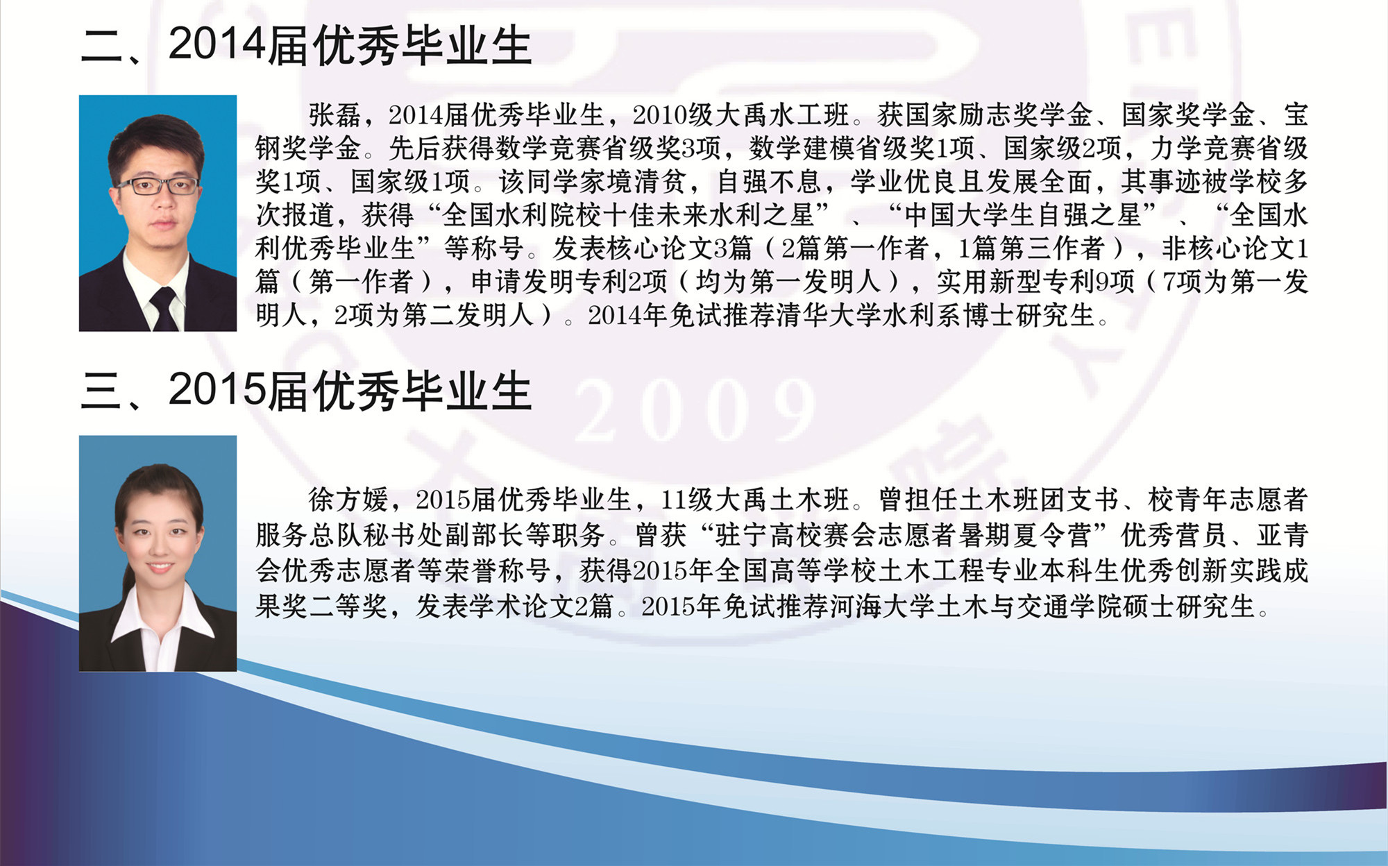 荣誉榜——大禹学院优秀毕业生风采、直博生风采